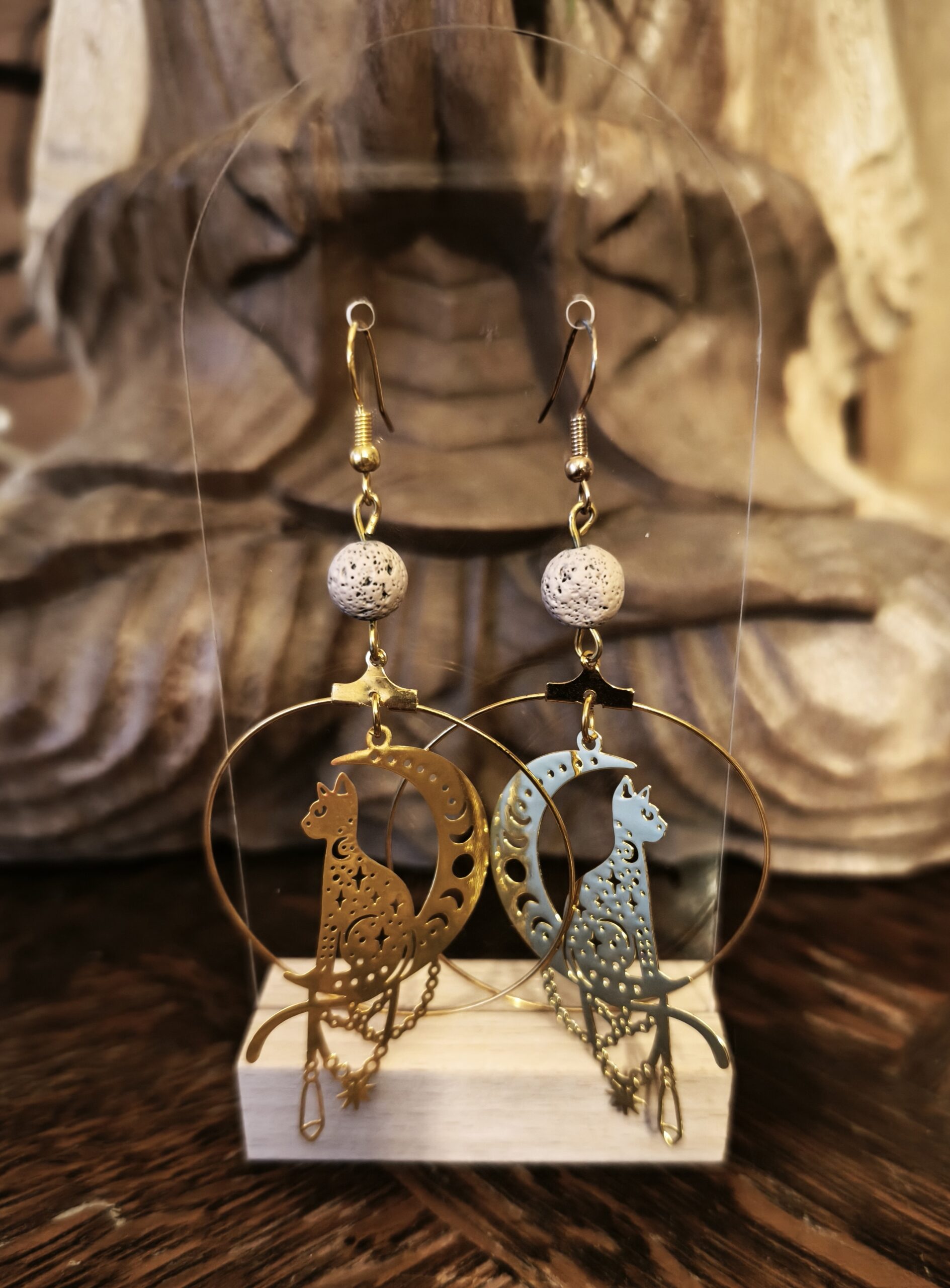 Boucles d’Oreilles Aromathérapie, un bijou félin, élégant et apaisant.