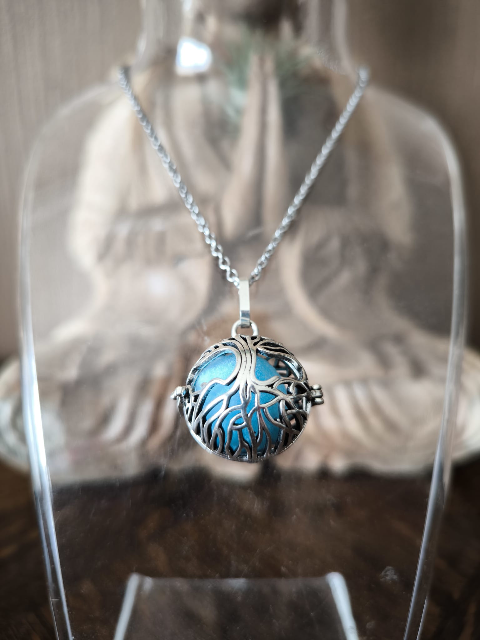 Collier d’Aromathérapie Arbre de vie type carillon argenté