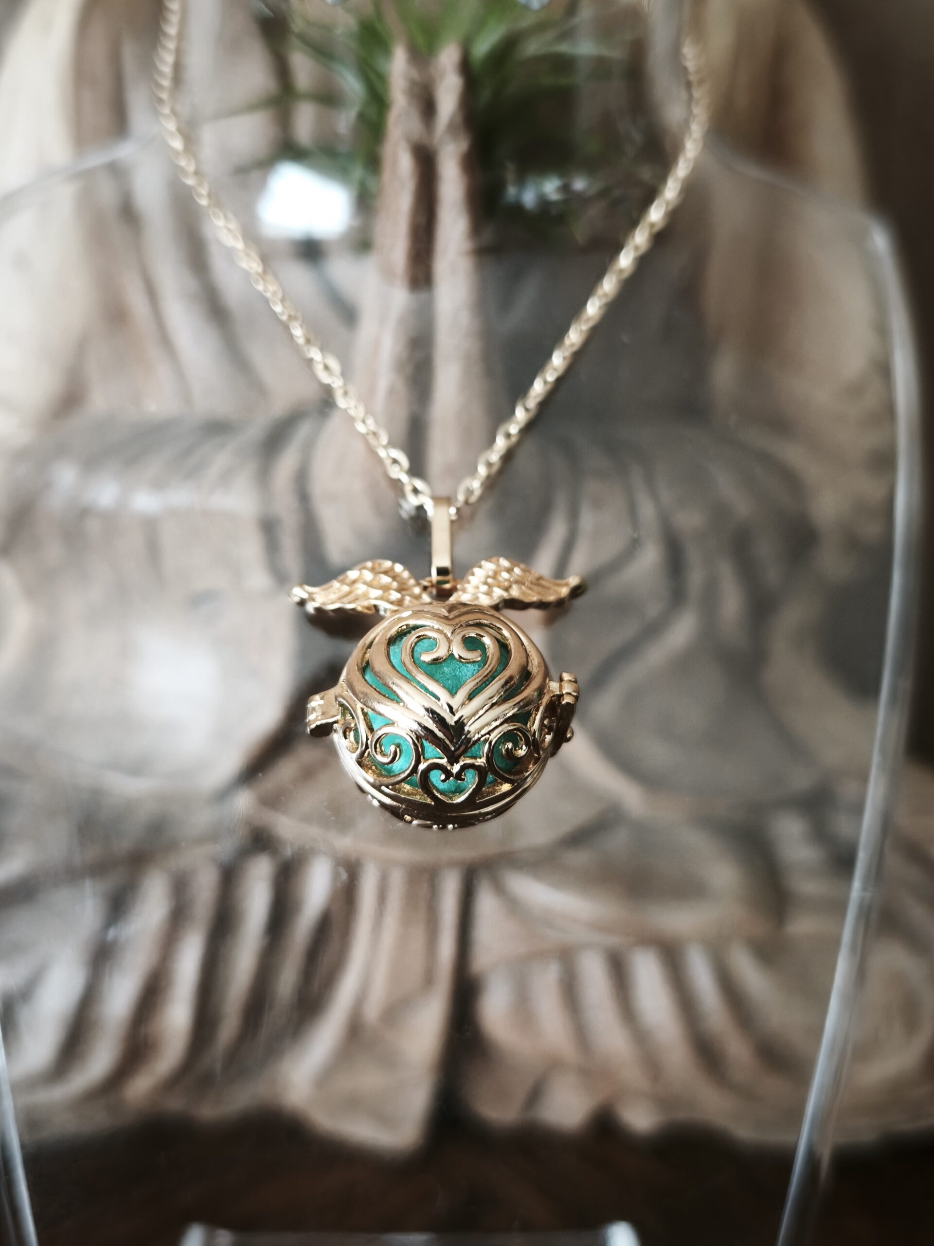 Collier d’Aromathérapie Cœur Ailé Rond doré