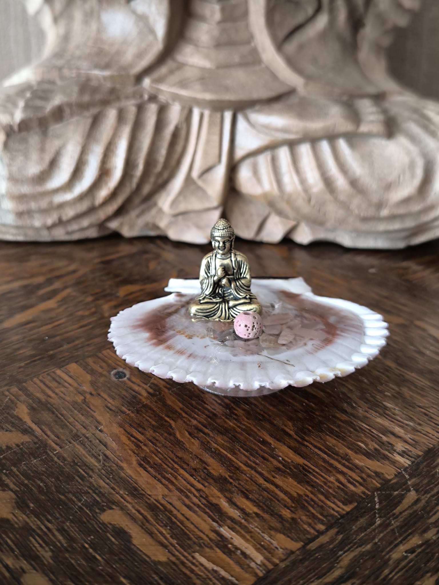 | Matériaux | coquillage, pierre de soleil, résine, métaux, bouddha (résine et pierre), pierre poreuse, |