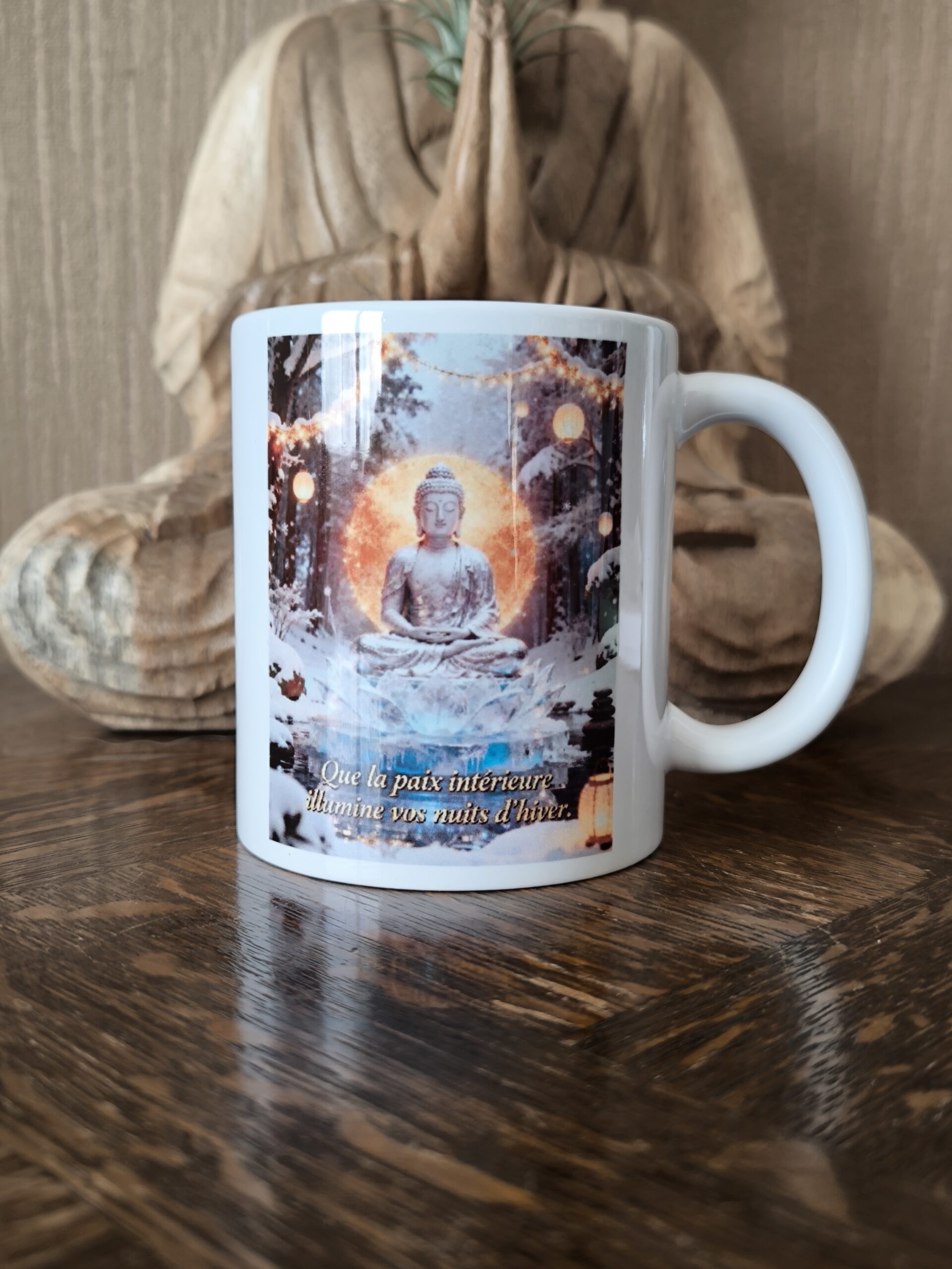 Mug Bouddha Hiver – Paix Intérieure et Sérénité pour droitier