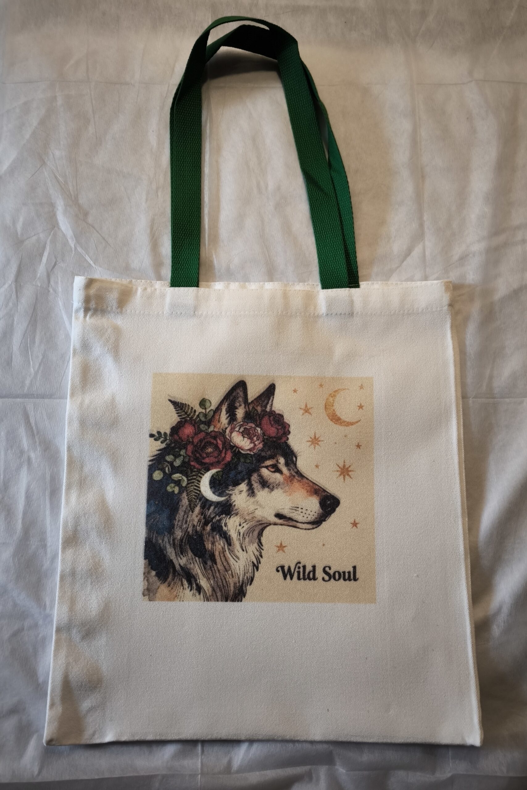 Affirme ton énergie sauvage et intuitive avec ce Tote Bag Loup – Wild Soul.